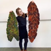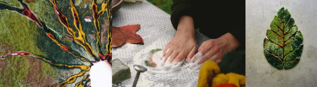 Mirjam creëert van wol bladvormige wandobjecten met de techniek natvilten. Door het bestuderen van verschillende nerfstructuren in bladeren en deze vervolgens toe te passen in de vilten wandobjecten, probeert Mirjam de diversiteit en de schoonheid van deze details over te brengen.
