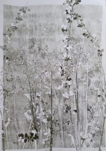 Vorig jaar exposeerde Sarah n.a.v. een Artist In Residence in Trompenburg met een reeks natureprints gemaakt met planten uit Trompenburg.