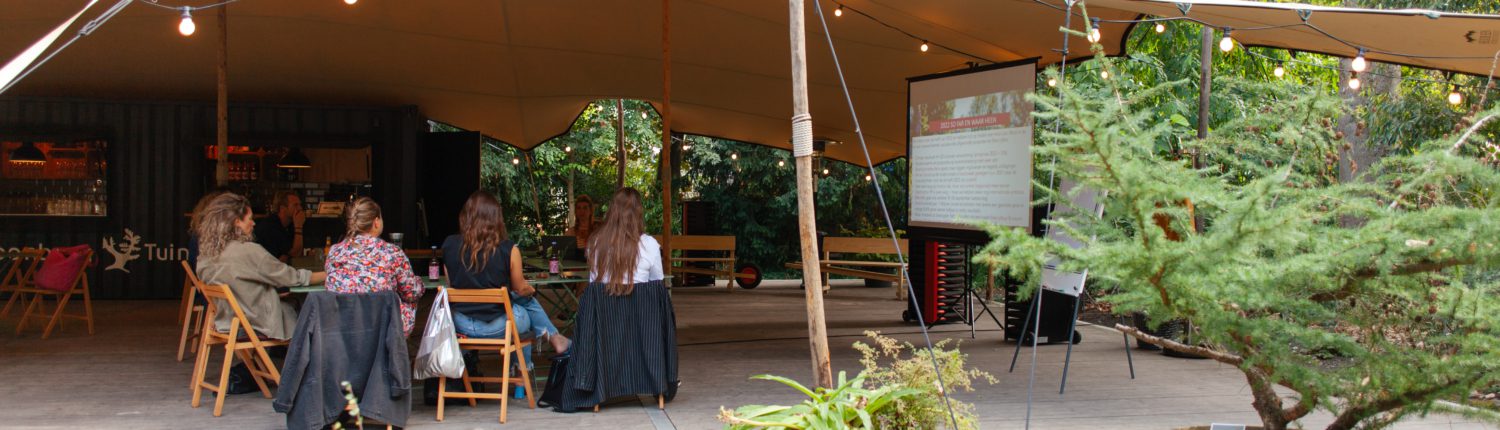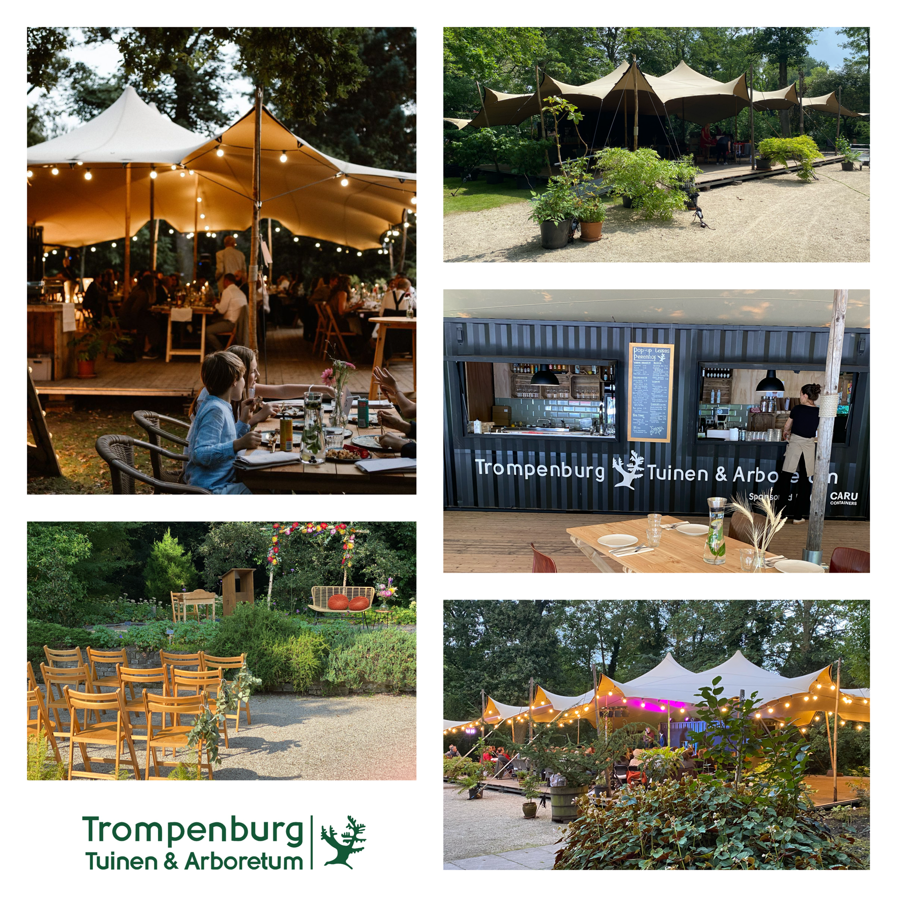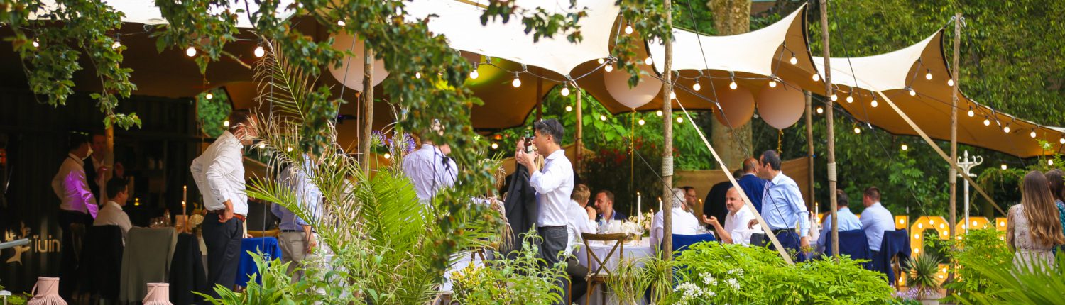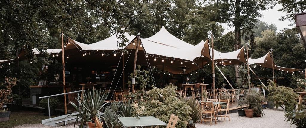 Tuin Perenhof is schitterend. Omringd door groen, is het een van de mooiste plekken van Rotterdam om uw gasten te ontvangen. Maar het blijft een buitenlocatie en dus is het weer altijd een factor die meespeelt. Vandaar dat we van maart t/m december onze sretchtent neerzetten. Deze tent van 18 bij 12 meter is voor veel typen bijeenkomstem het perfecte onderkomen. De mogelijkheden zijn eindeloos, zeker ook omdat dit tuindeel van Trompenburg ook exclusief te reserveren is, zodat privacy gewaarborgd is.