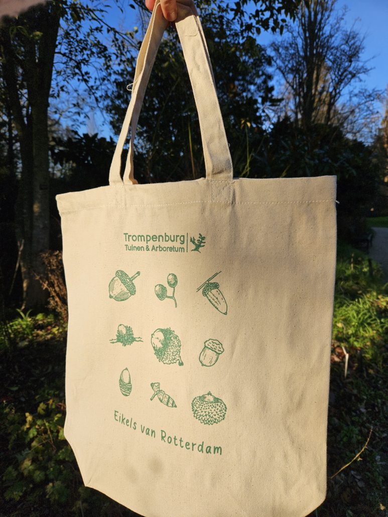De totebag is van stevig katoen gemaakt met donkergroene zeefdruk. Met deze aankoop steun je Trompenburg Tuinen & Arboretum met het behoud en onderhoud van 8 hectare botanische tuin.